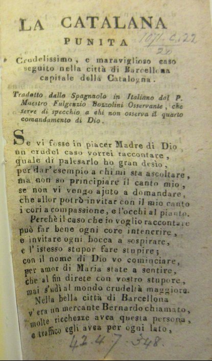 | Notes | The publication is explicitly presented as a translation from Spanish (see the indication on the title page ‘tradotto dallo Spagnolo in Italiano’). No source text has been located so far. |